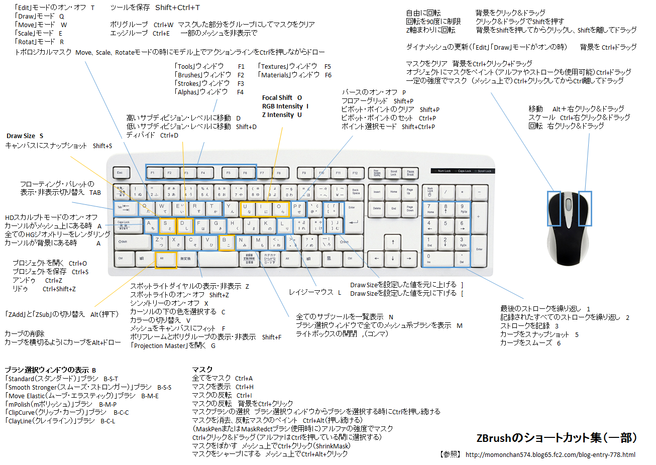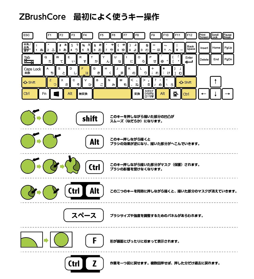 のぶほっぷ:福井信明さんがTwitterにアップしていたZBrushCoreのよく使うキー操作