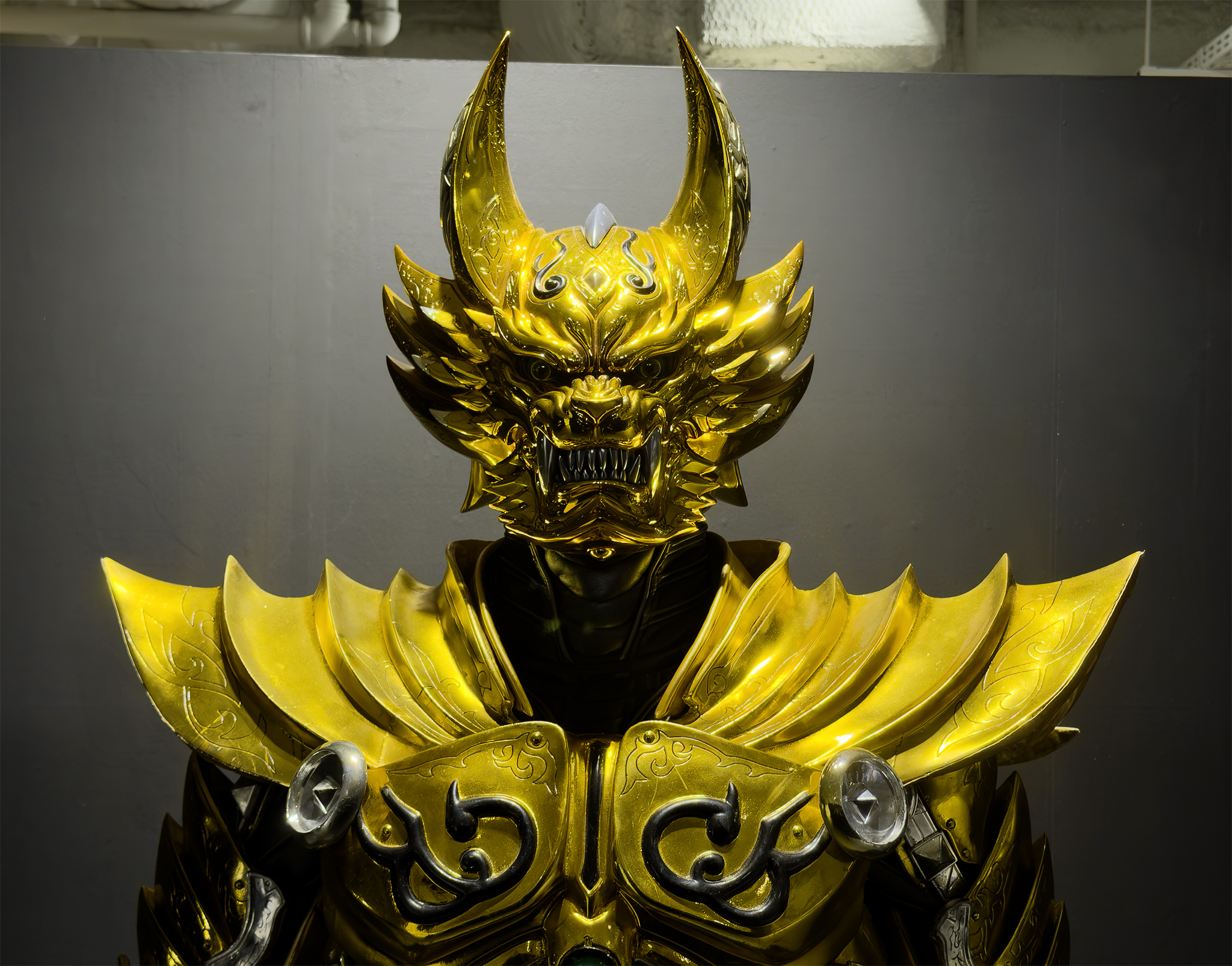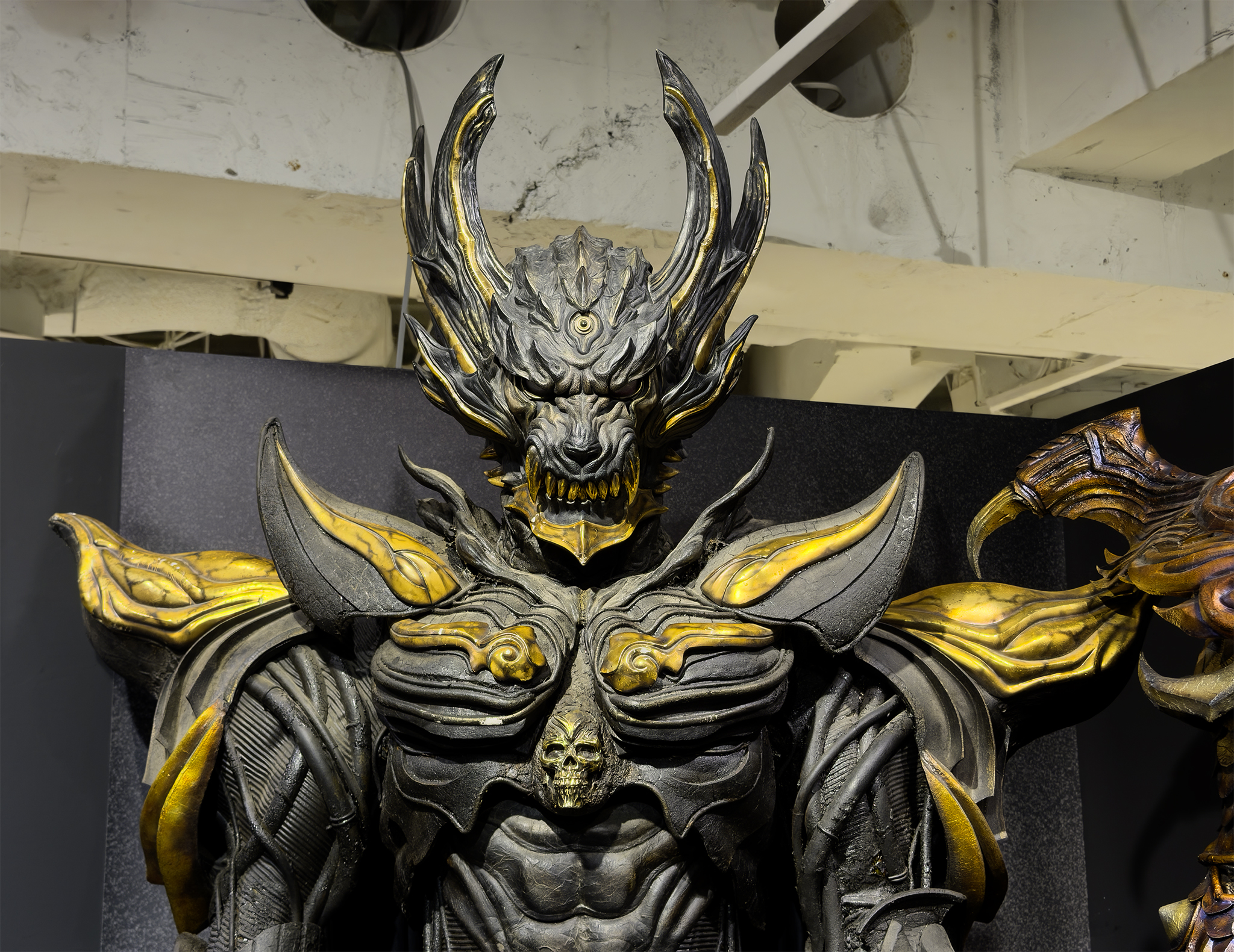 魔戒騎士の衣装と鎧、ホラーの造形物も展示されていた。キバの実物が見れた↓