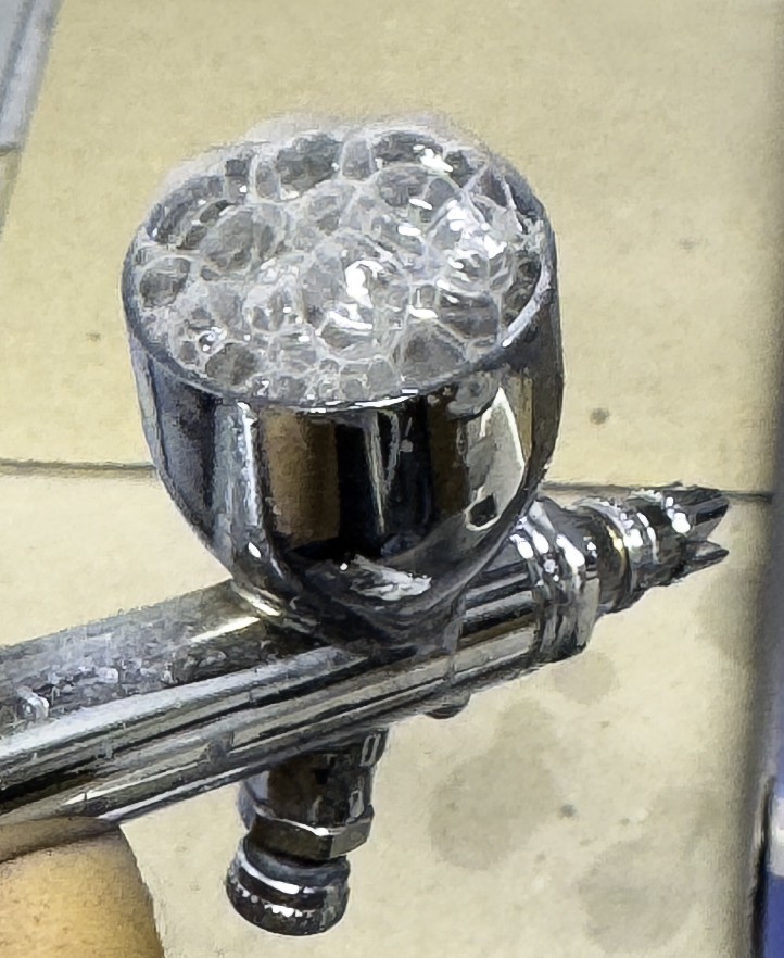 使用後のエアブラシの洗浄で、アクリジョン特有の泡立ちやすさを実感↓
