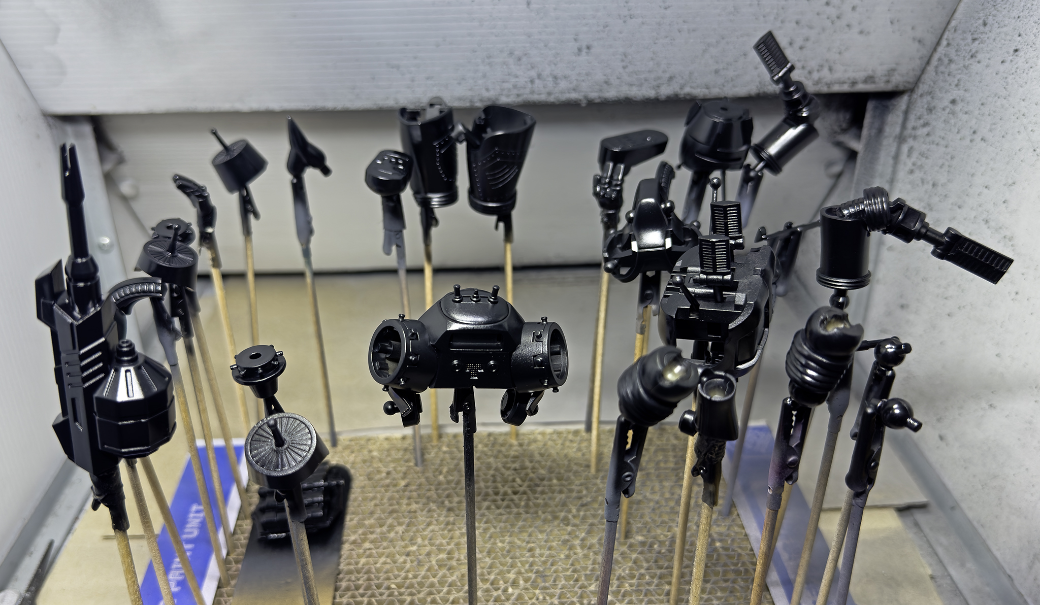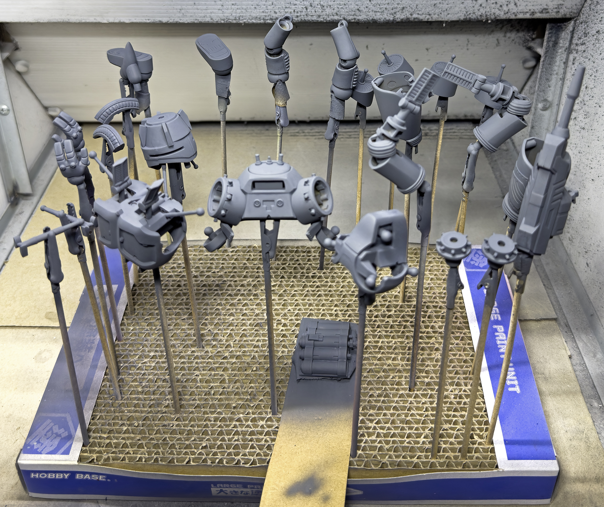 メタリック塗装する想定で、さらにアクリジョンのブラックを吹いた↓