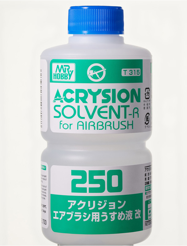 今回はこのベースグレーをエアブラシで吹いてみる。エアブラシ塗装用の専用うすめ液を使用↓