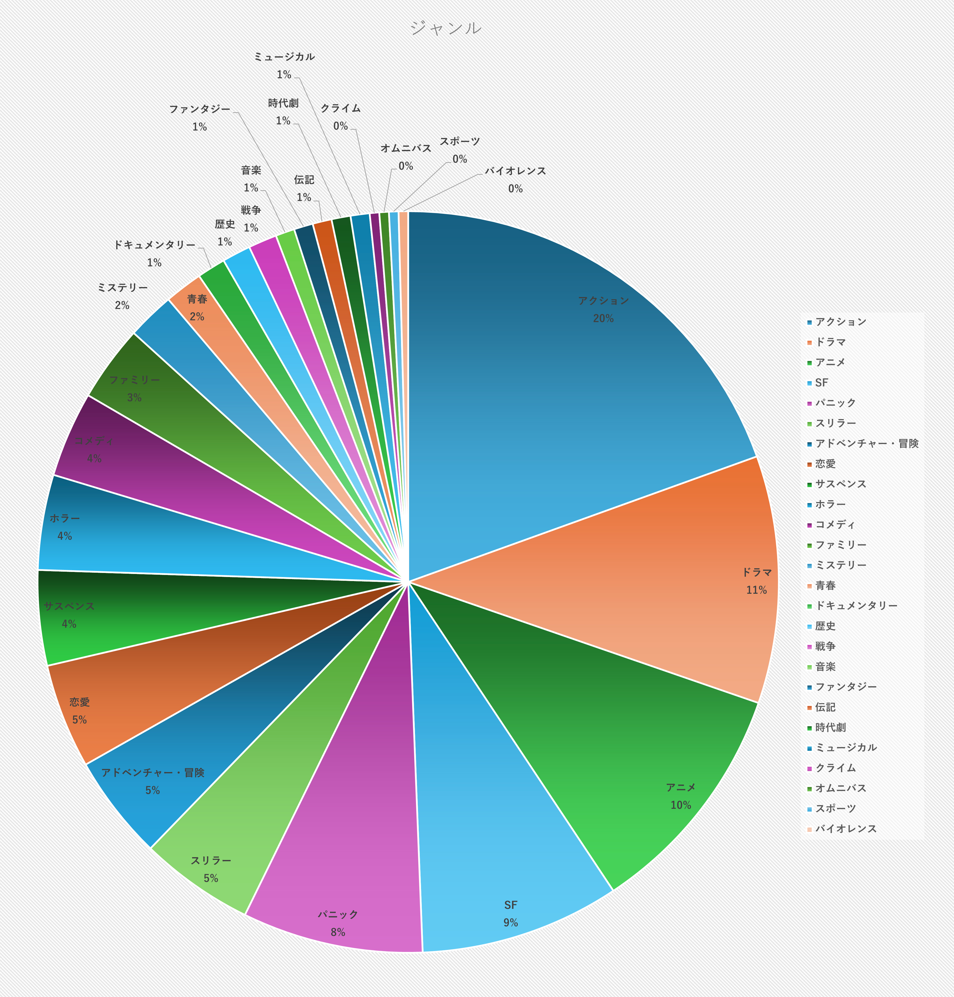 アクション、ドラマ、アニメがトップ3なのは昨年と似ている。昨年はコメディが4位だったが、今年はコメディをあまり鑑賞しなかったようだ。